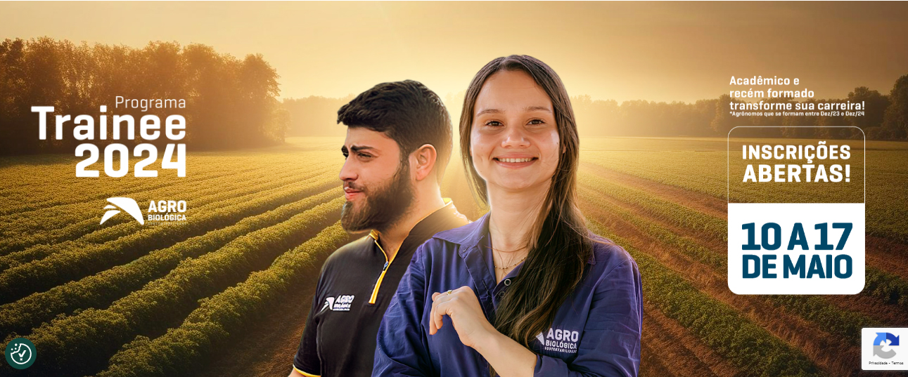 A Agrobiológica Sustentabilidade, uma empresa da Crop Care, holding controlada pela Lavoro Limited, está com inscrições abertas para o Programa Trainee 2024. As vagas são voltadas para a área comercial. As inscrições serão aceitas até 17 de maio de 2024 e podem ser realizadas por meio do site oficial do programa. “Buscamos o perfil de recém-formados ou no ano final de graduação, que desejam adquirir conhecimento no setor de insumos biológicos, em constante expansão. Na Agrobiológica, esses jovens talentos terão a oportunidade de se desenvolver profissionalmente em uma grande empresa, mesmo aqueles que ainda estão na faculdade. As vagas são destinadas a diversos estados, nas regiões Sudeste, Centro-Oeste e Sul”, informa Rafael Garcia, fundador e CEO da Agrobiológica.